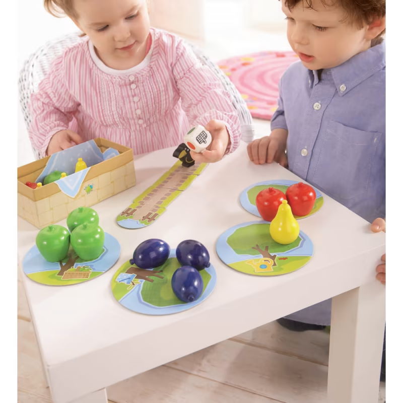 Mes premiers jeux – Mon premier verger est une adorable version pour bambins du jeu classique HABA « Le verger » . Les grosses pièces en bois sont faciles à saisir par les petites mains. Un jeu de lancer de dé passionnant pour 1 à 4 joueurs à partir de 2 ans.