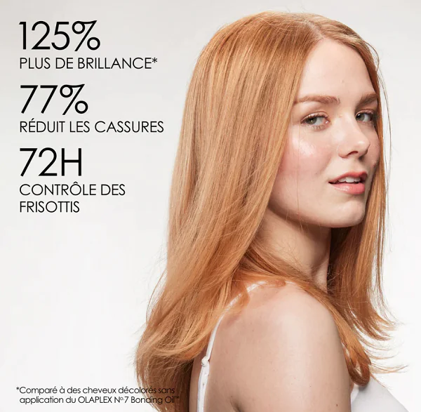 *Par rapport aux cheveux décolorés sans application de l’OLAPLEX Nº.7 Bonding Oil