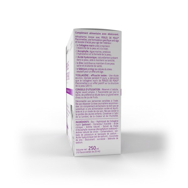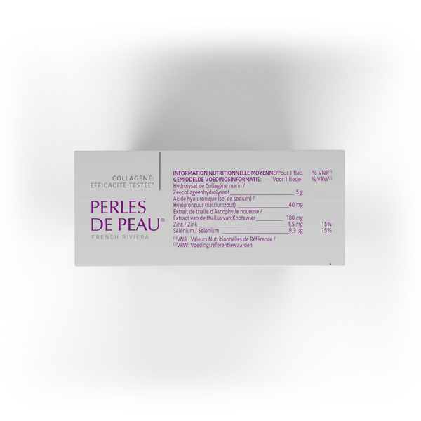 Forts de leur expertise, les laboratoires Arkopharma ont spécialement élaboré Perles de Peau® Booster d’éclat Anti-âge : une formule à base de Collagène marin, d’Ascophylle, d’Acide hyaluronique et de Vitamines & Minéraux rigoureusement sélectionnés par les experts du Groupe.