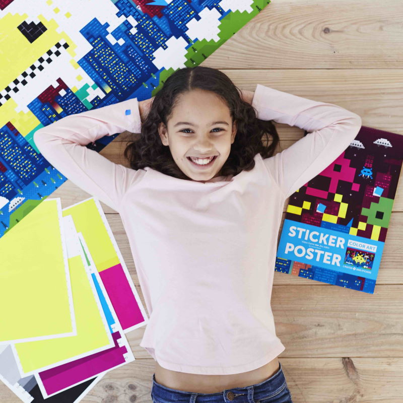 Des stickers pixels pour s’occuper à la maison ! Les enfants se prennent au jeu et s’amusent pendant des heures à coller des stickers colorés. Ils reconstituent petit à petit un très beau décor imaginaire tout en pixels.
