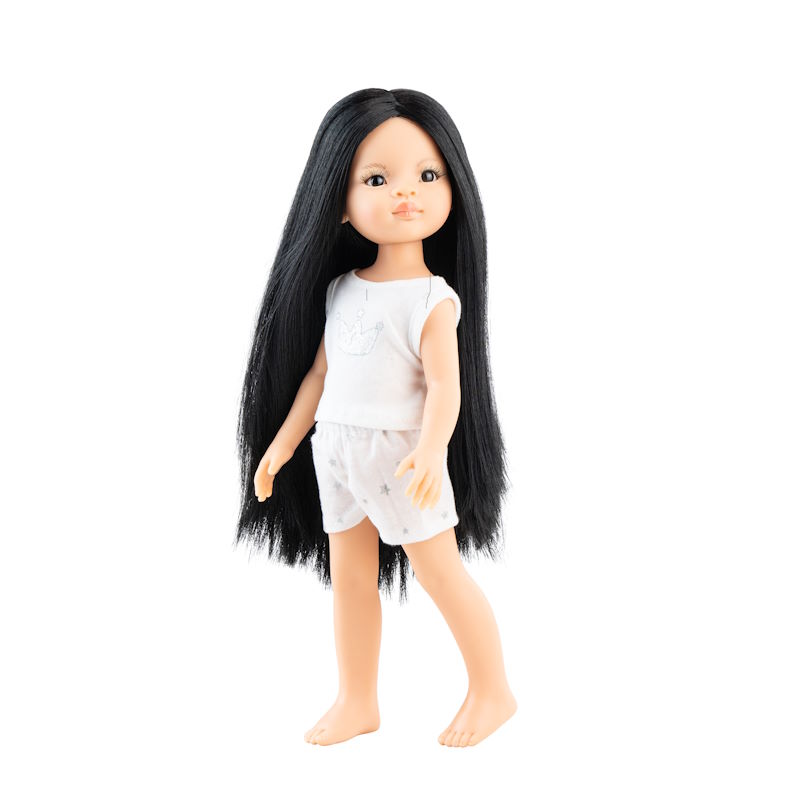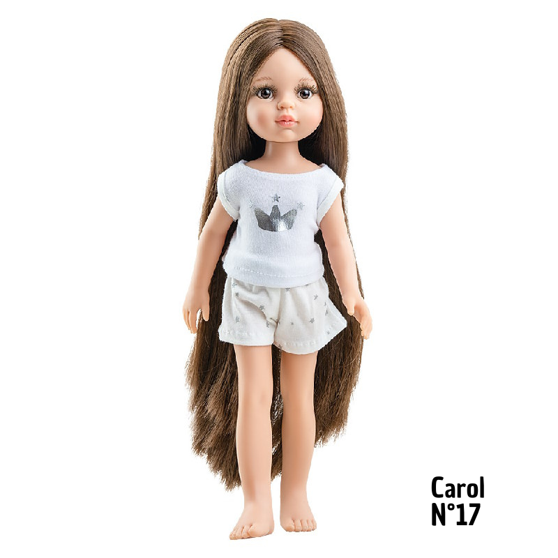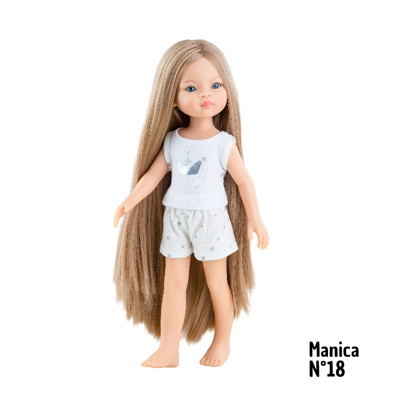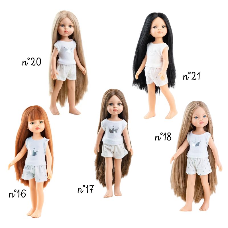 Poupées fabriquées en Espagne. – Corps en vynile, cette poupée mesure 32 cm. – Yeux fixes – Cheveux implantés