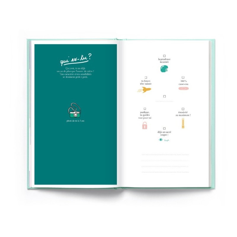 Dans le cahier de souvenir Pour ne rien oublier de ton enfance, vous pourrez noter tous les moments marquants de la vie de votre enfant : ses fêtes d’anniversaire, ses progrès, ses amis, sa vie d’écolier ainsi que toutes ses aventures du quotidien !