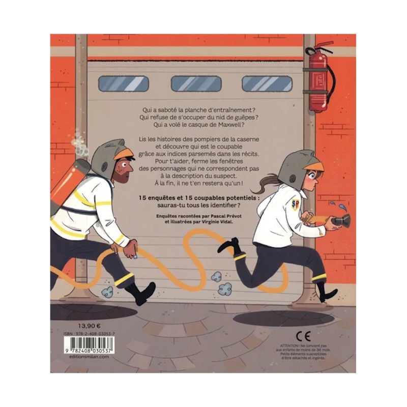 À la caserne, le lecteur mène l’enquête et élimine lui-même les suspects pour trouver qui est le coupable. Un casque ? Une veste ignifugée ? Une bouteille d’air ? Tout le monde pourrait être coupable ! Au fil de 15 histoires illustrées avec humour, le lecteur doit trouver qui a saboté la planche d’entraînement, qui refuse de s’occuper du nid de guêpes ou encore qui a volé un casque juste avant une intervention. Grâce à ces enquêtes, l’enfant s’entraîne à lire attentivement une histoire et apprend à trier des informations.
