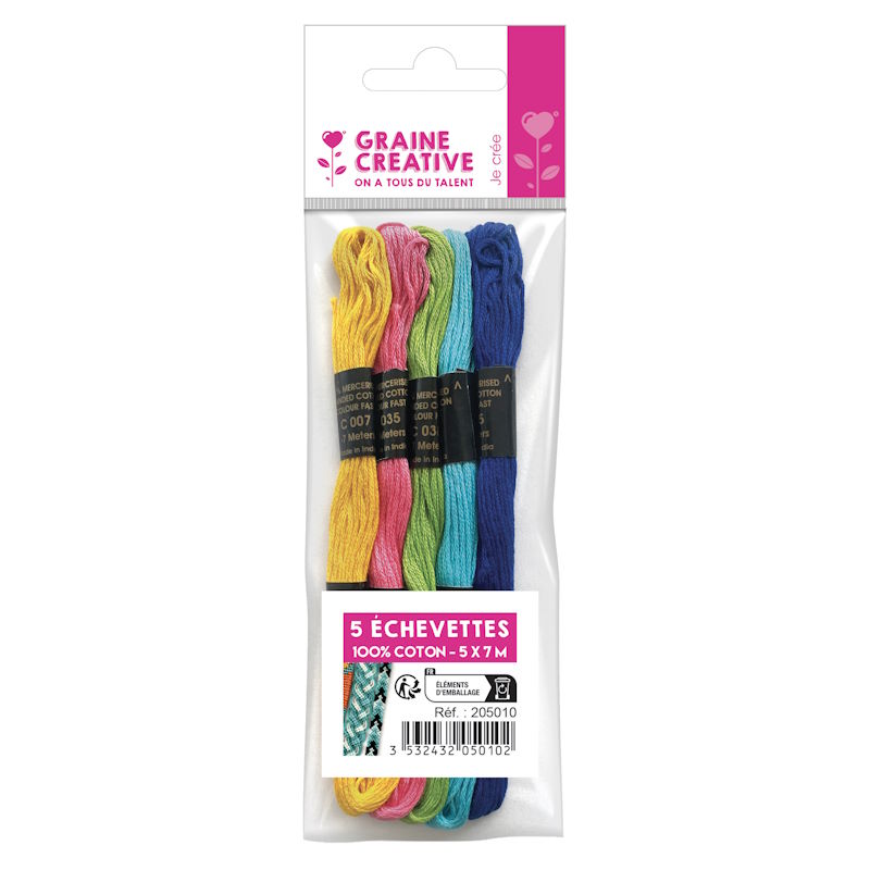 Sachet 5 Echevettes 7m – 100% Coton – Graine Créative