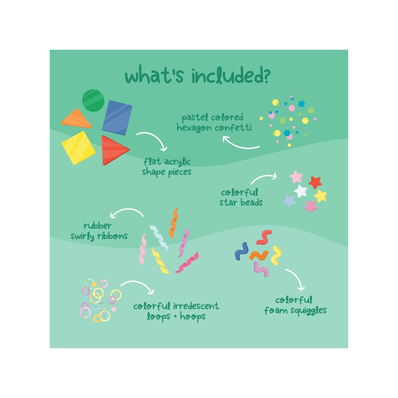 Le sachet Formes contient toute la décoration pour compléter votre bocal sensoriel.