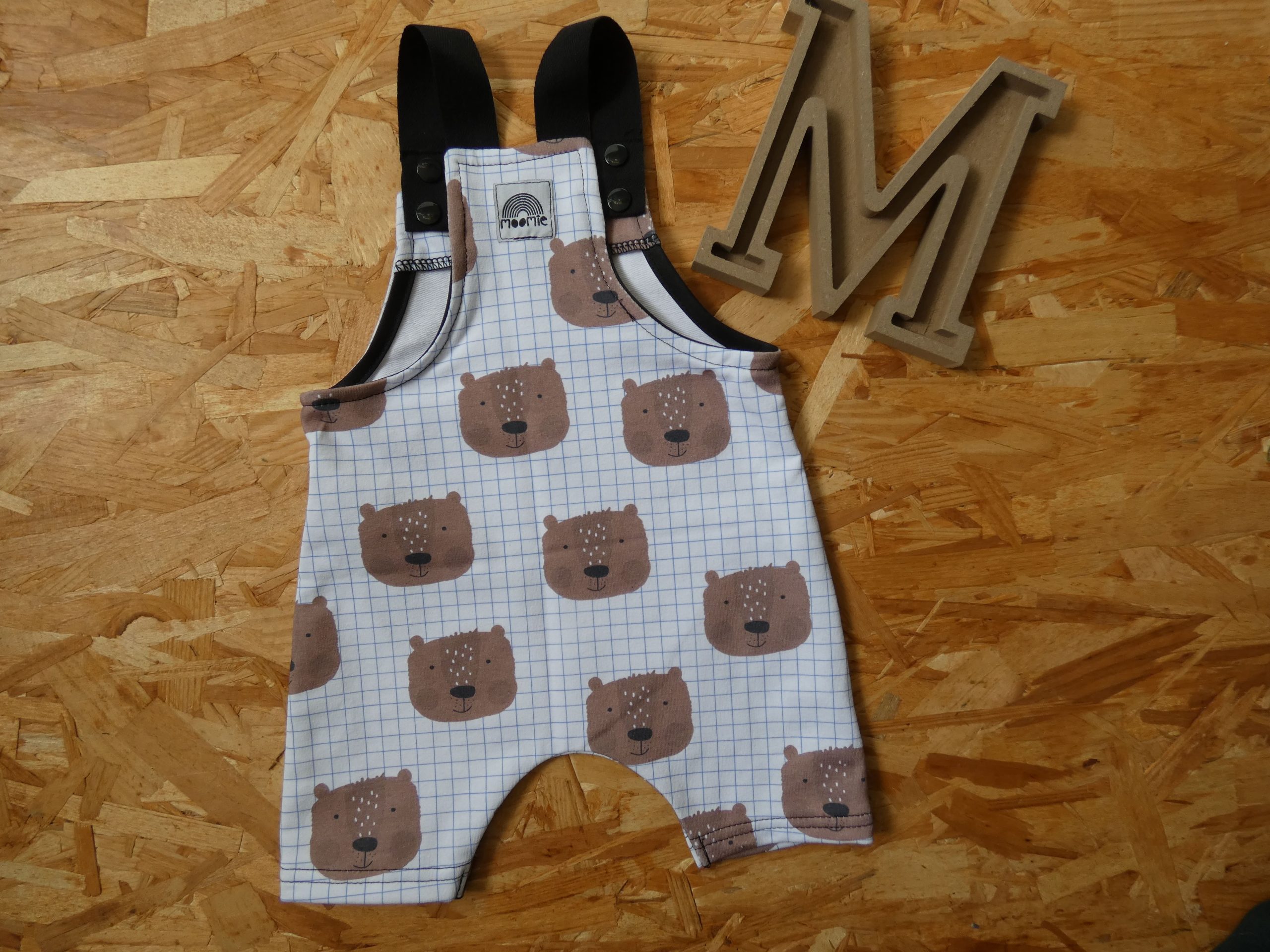 Des carreaux et des petits ours pour une salopette courte trop chou et originale.