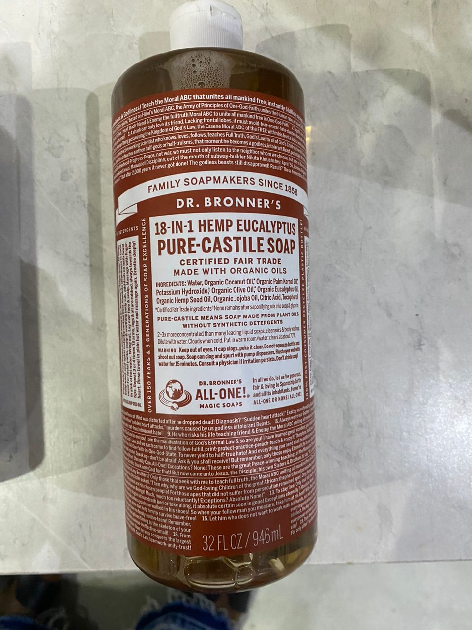 Savon de Castille pur au chanvre et à l’eucalyptus 18 en 1 du Dr Bronner’s 946 ml