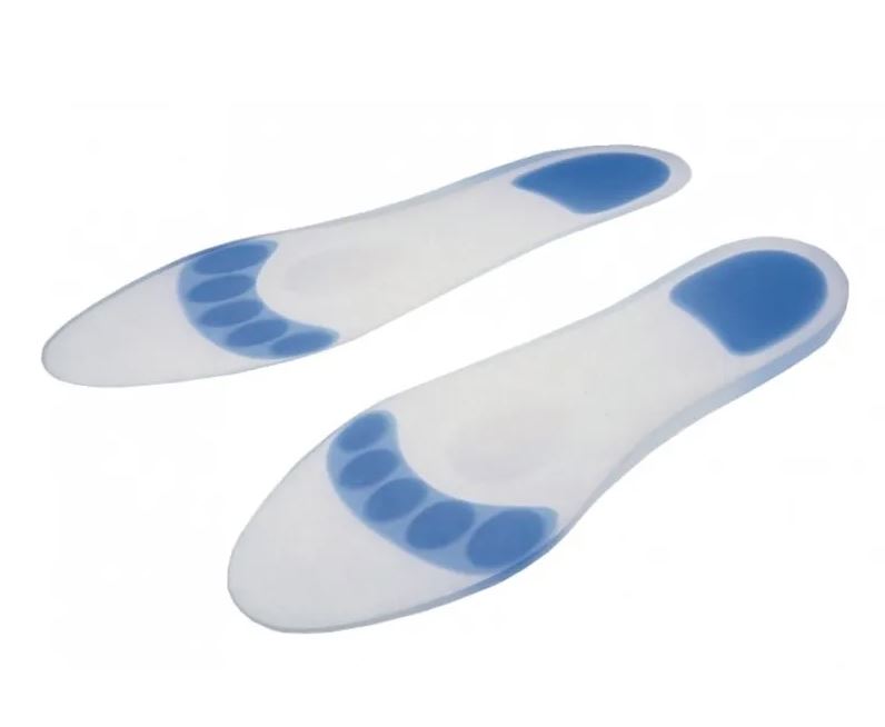 Semelles en silicone avec un système d’amortissement spécial via des zones de confort bleues, micro-perforé. Ces semelles sont adaptées à l’anatomie de la voûte plantaire.