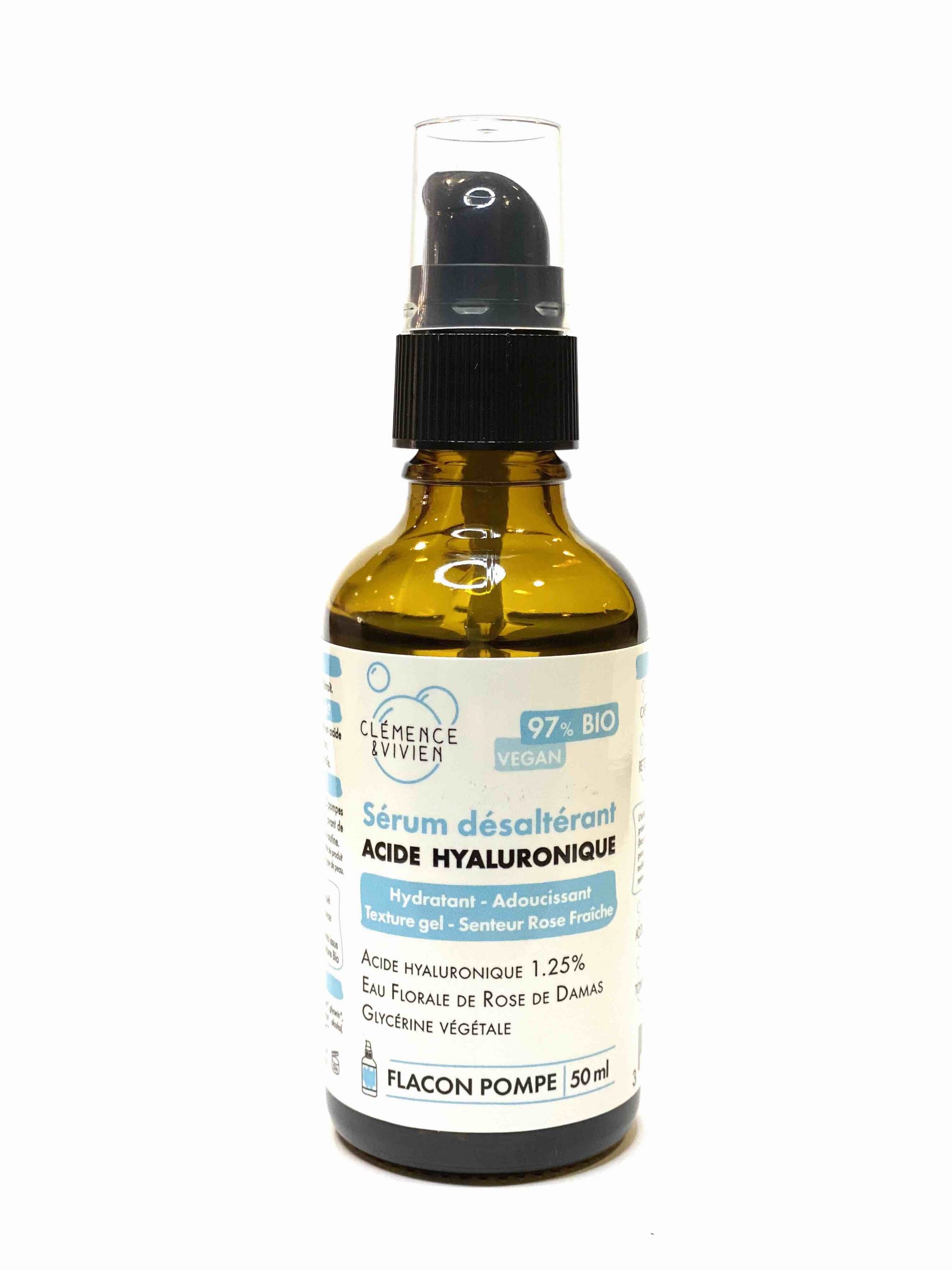 Ce sérum désaltérant à l’acide hyaluronique CLÉMENCE&VIVIEN apporte souplesse et hydratation à votre peau. En effet, la déshydratation est un état passager de la peau et peut arriver à tout le monde. À ce moment là, vous ressentez des tiraillements à certains moments, des ridules de déshydratation se forment, surtout autour de l’oeil, et pour finir la peau est terne. Afin de remédier à tout cela il faut apporter de l’eau à votre peau. Tout d’abord en buvant de l’eau mais aussi avec des soins comme ce sérum. 50ml. Naturel, vegan, made in france