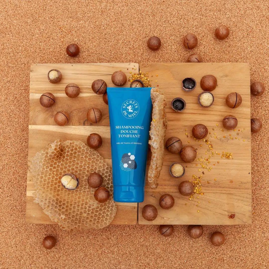 2 en 1 : vivifie le corps et adoucit les cheveux ! Ce Shampooing Douche redonne punch et vigueur à votre corps et rend vos cheveux forts, doux et brillants grâce à l’action du Miel et du Ginseng.