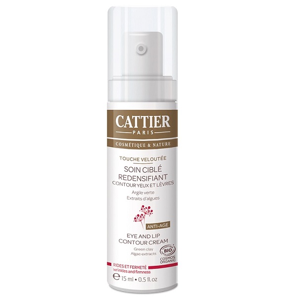 Ultra-complet, le Soin ciblé redensifiant touche veloutée Cattier certifié bio a été spécialement développé pour les zones fragiles du contour des yeux et des lèvres. Avec sa formule lissante et onctueuse, il nourrit intensément et lutte contre les signes de fatigue. Son association d’extraits d’algues rouges et vertes améliore la fermeté de la peau, décongestionne et réactive la microcirculation : les poches sont visiblement réduites, les cernes sont éclaircis et les rides d’expression sont comblées. Ce soin perfecteur de peau à l’argile verte régénérante, lisse le grain de peau dès l’application et floute les signes de l’âge en renvoyant la lumière. Jour après jour, le regard est défroissé et reposé, le contour des yeux et des lèvres est raffermi et lissé : le visage s’illumine d’une nouvelle jeunesse.