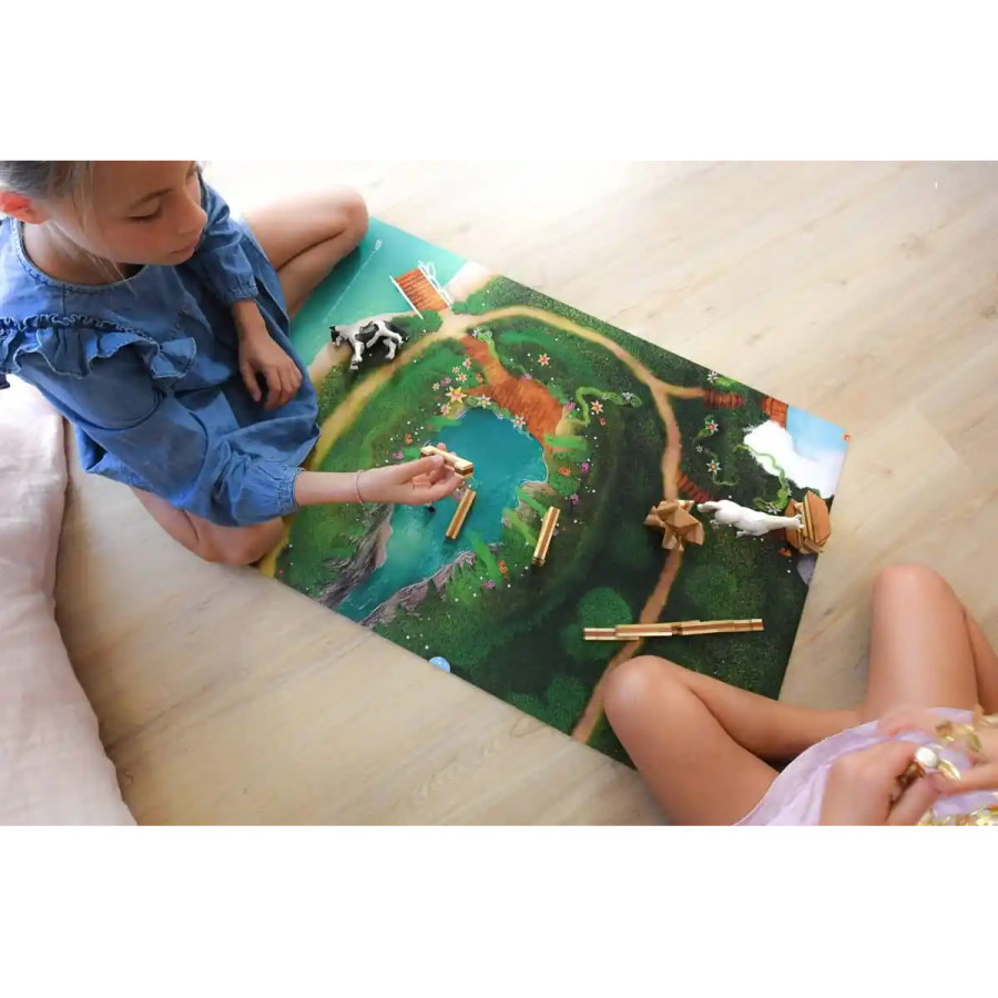 Évocateur du monde des licornes, des fées, des magiciens ou des elfes, ce tapis permet à chaque enfant de recréer un monde merveilleux. Autour de son nuage moelleux, ses champignons colorés, sa cascade et ses eaux turquoises, les figurines vivent leurs plus belles aventures !