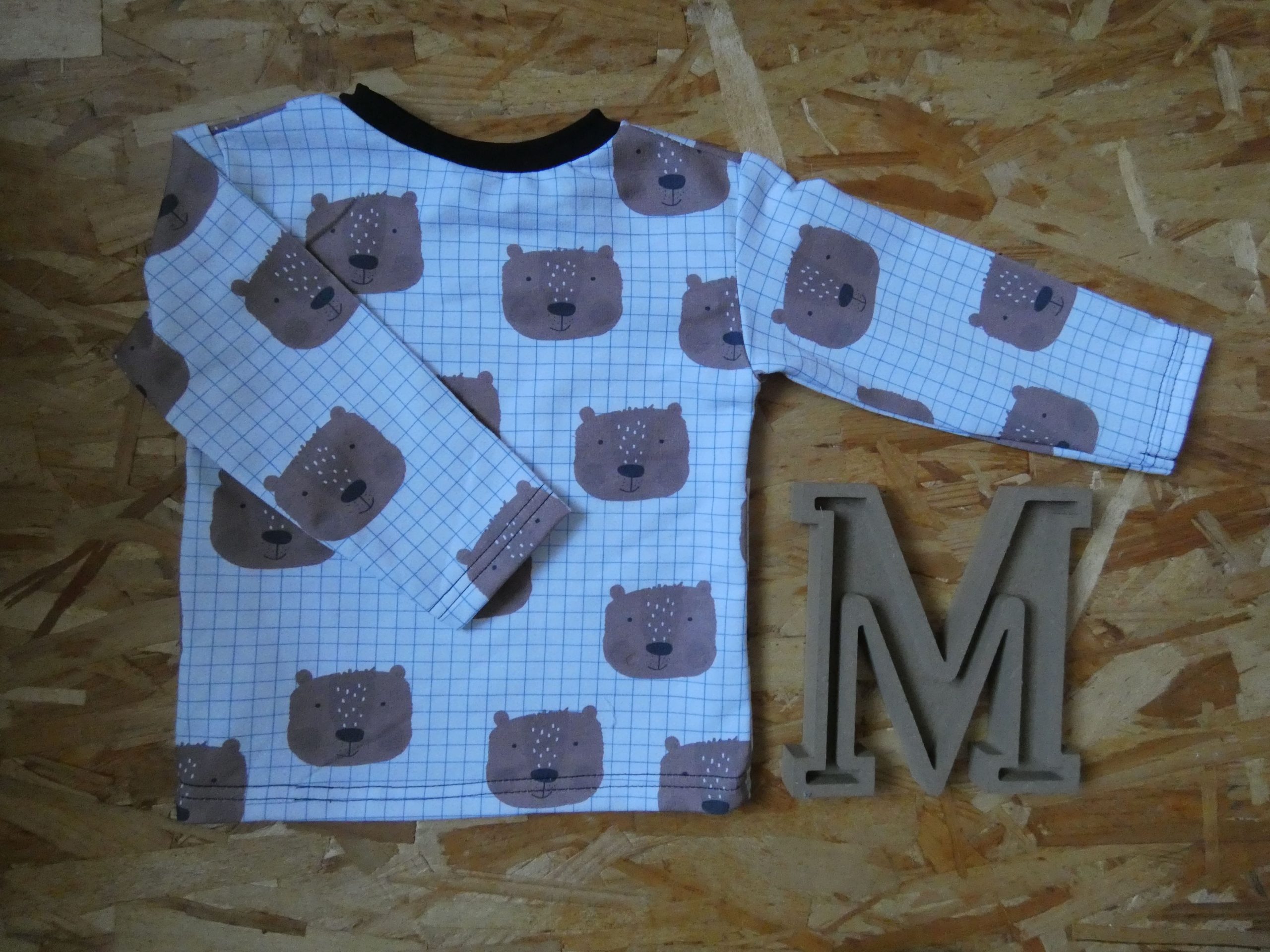 Tshirt manches longues disponible du 6 mois au 4 ans fabriqué en France avec un imprimé ours et des carreaux.