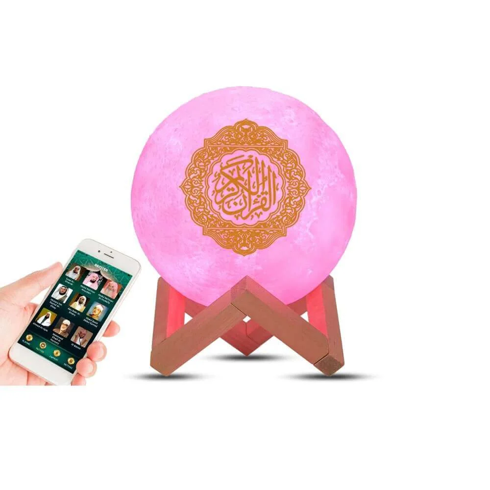 La veilleuse coranique en forme de lune est une lampe de chevet rechargeable avec un haut-parleur intégré. Elle est conçue pour les musulmans qui souhaitent faire des efforts dans la religion en utilisant cette veilleuse en forme de lune colorée pour écouter le Coran. Cette veilleuse coranique lune augmente votre foi et crée une atmosphère paisible dans votre maison. Avec sa connexion Bluetooth et son haut-parleur intégré, vous pouvez facilement connecter votre smartphone ou tablette pour écouter vos récitations préférées tout en profitant d’une ambiance agréable.