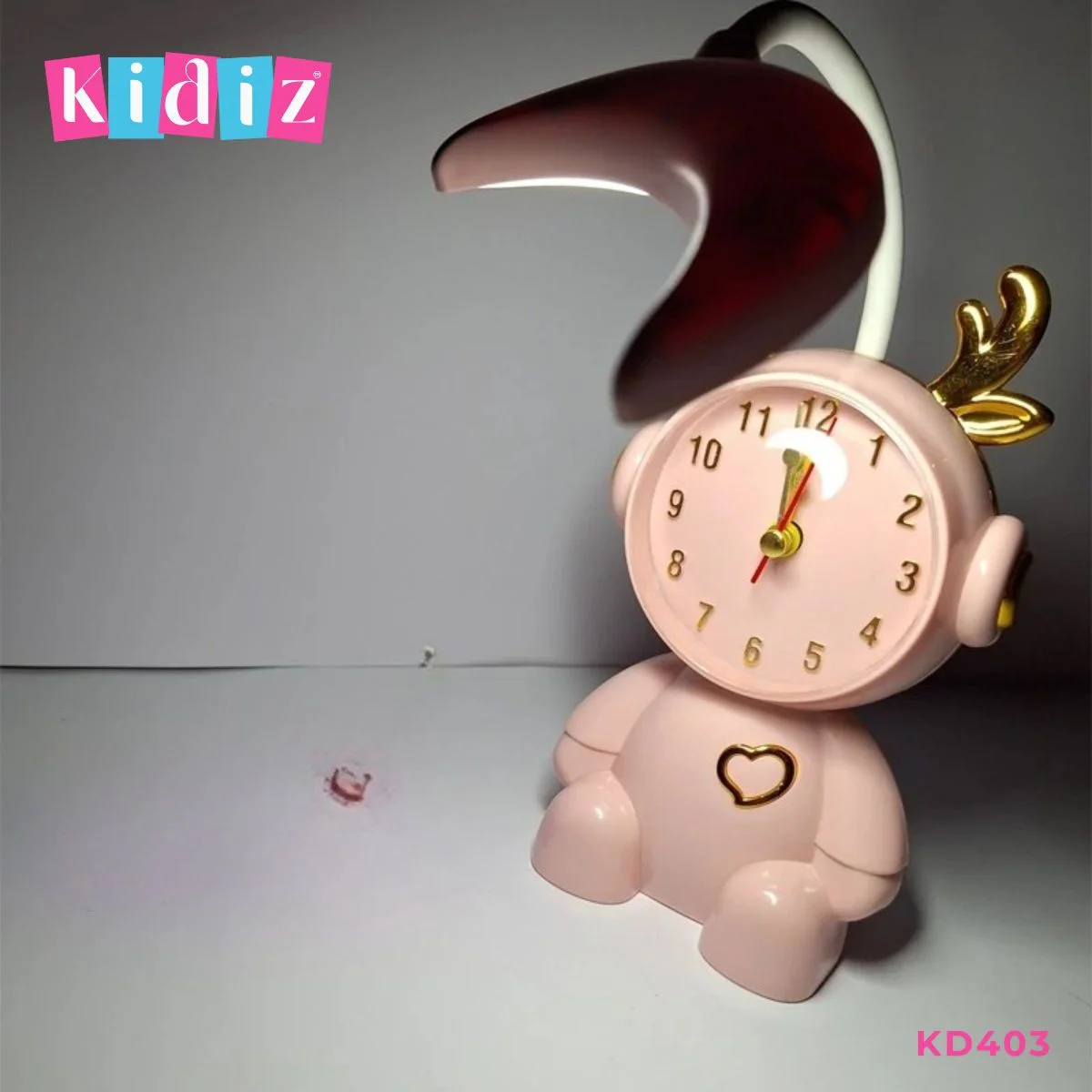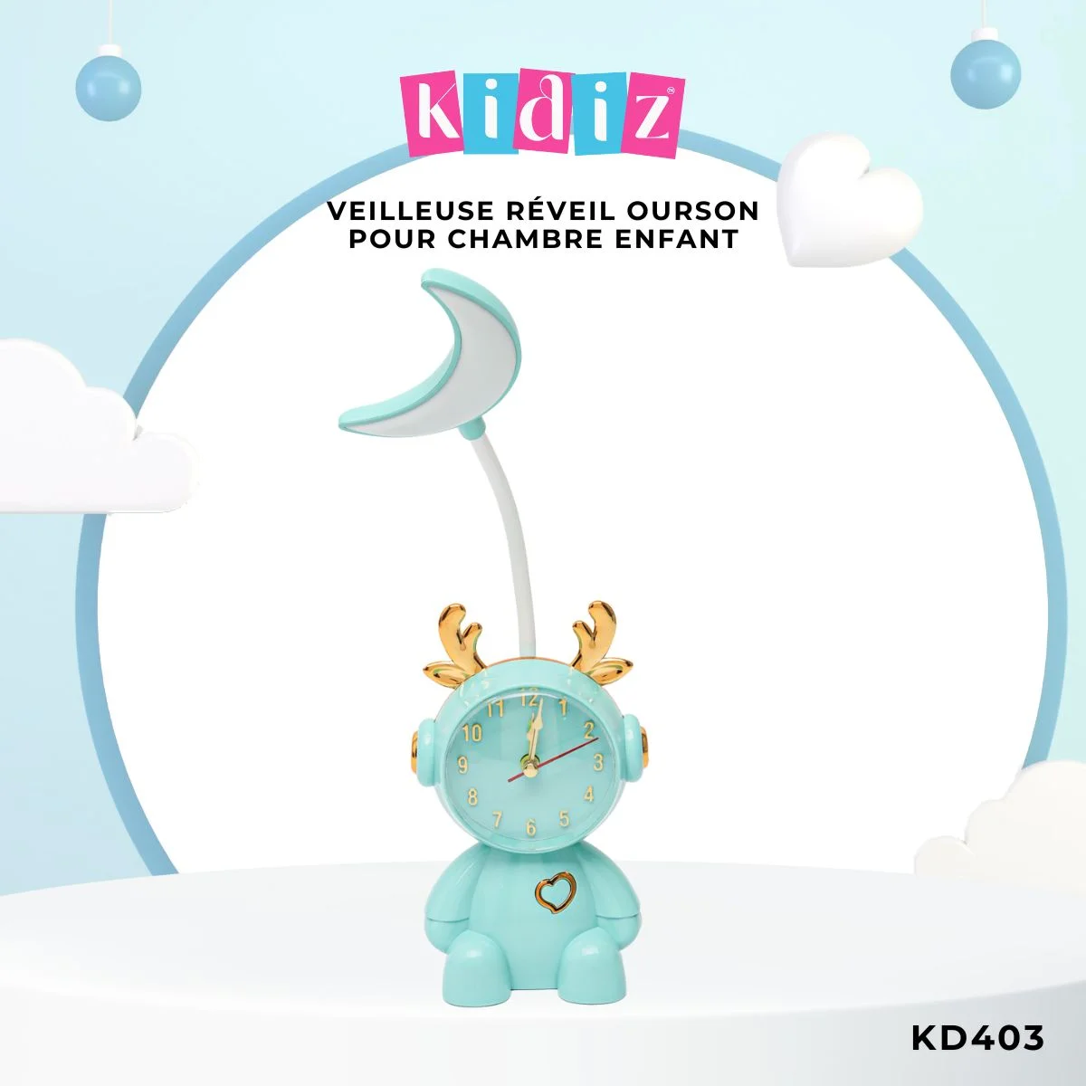 Ajoutez une touche de tendresse et de fonctionnalité à la chambre de votre enfant avec le réveil veilleuse KD403, signé KIDIZ.