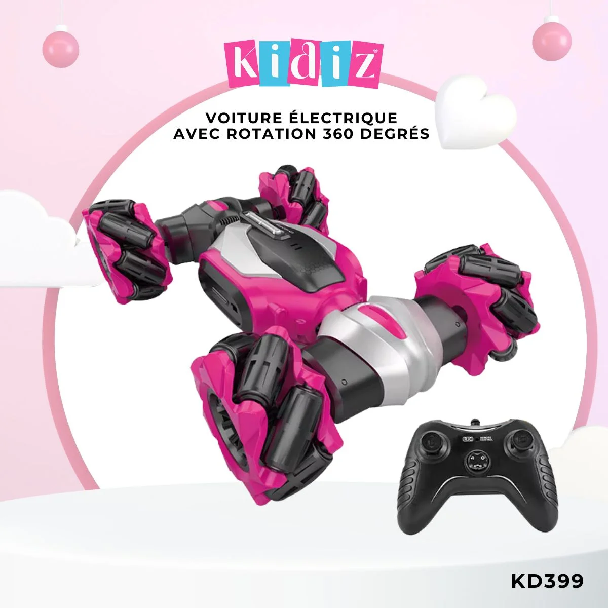La voiture électrique KIDIZ (modèle KD399) est conçue pour offrir une expérience de conduite unique grâce à sa capacité de rotation à 360 degrés.