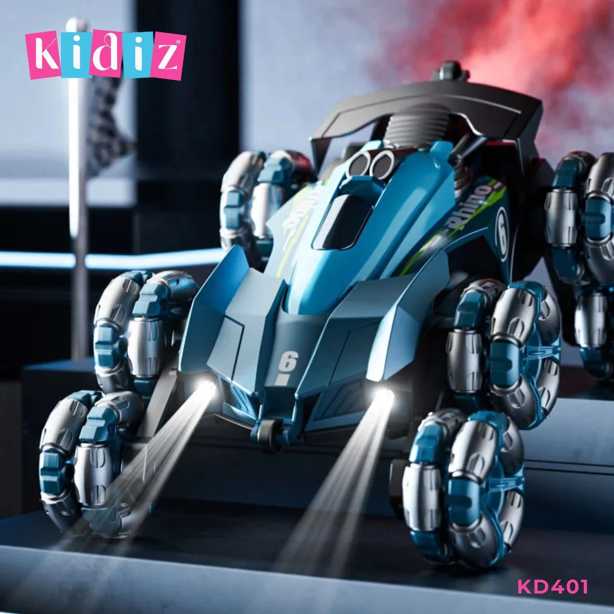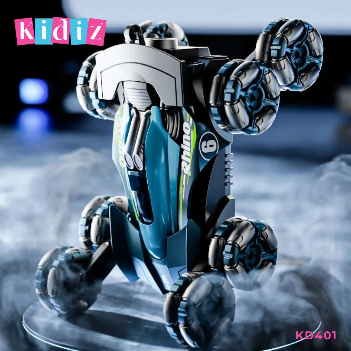 La voiture télécommandée KIDIZ KD401 se pilote avec une manette classique ou un bracelet intelligent ! Grâce à ses roues omnidirectionnelles, elle effectue des cascades à 360° et roule dans toutes les directions.