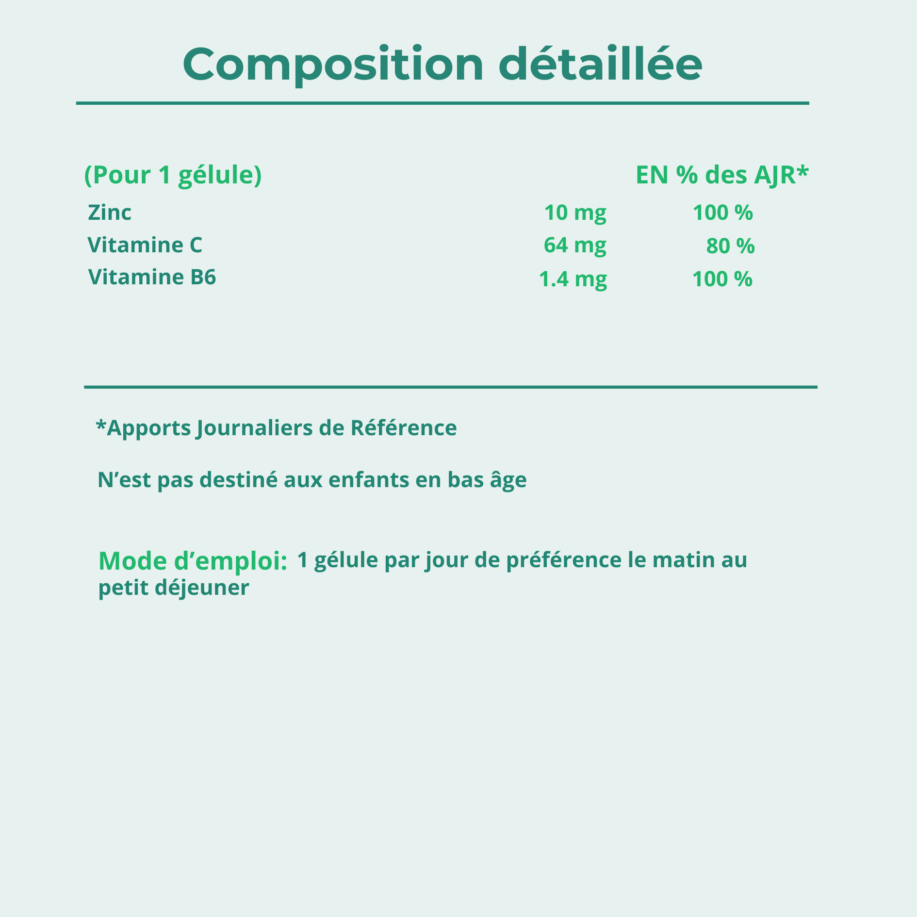 Le complément alimentaire au Zinc est une formule complète pour agir sur votre immunité et vos défenses naturelles. Bisglycinate de zinc Vitamine B6 Vitamine C