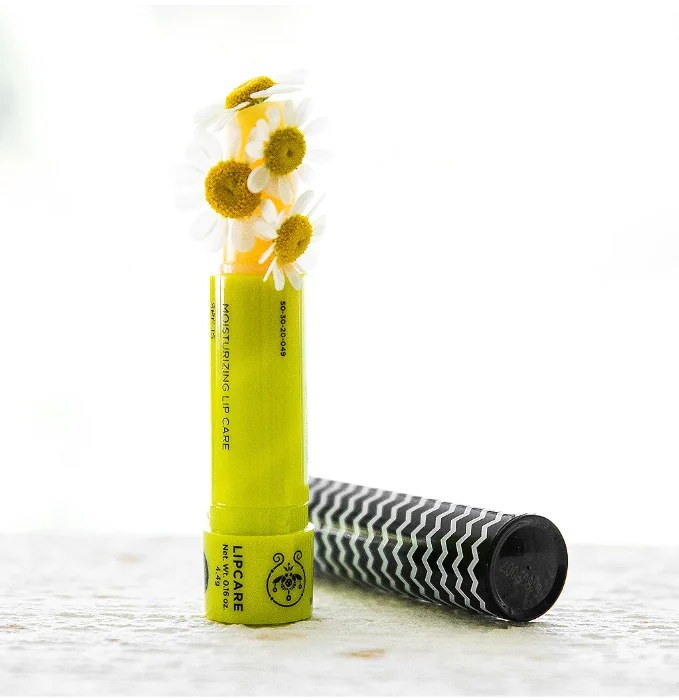 Le Soin des Lèvres SPF15 à la Camomille hydrate et offre une protection contre les méfaits du soleil.