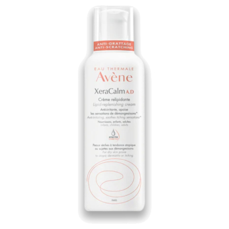 XeraCalm A.D crème relipidante soulage les peaux très sèches sujettes à l’eczéma atopique et aux démangeaisons grâce à l’association d’actifs d’exception choisis pour leur efficacité et leur innocuité. I-modulia®, 1er actif postbiotique issu de l’eau thermale d’Avène diminue les démangeaisons*, stimule les défenses de la peau et lutte contre les irritations. Les Cer-omega, lipides semblables à ceux de la peau agissent sur la sécheresse et restaurent la barrière cutanée. Grâce à la Cosmétique Stérile®, une technologie unique permettant de maintenir le produit stérile tout au long de son utilisation et son tube pompe parfaitement hermétique, ce soin haute performance garantit une sécurité et un respect optimal de la peau et du microbiome cutané. Sans conservateurs, sans parfum, non comédogène et élaboré en vue de minimiser les risques de réactions allergiques, XeraCalm A.D crème relipidante est idéale pour la peau des nourrissons, des enfants et des adultes.La crème anti-démangeaison qui nourrit et apaise la peau tout en rééquilibrant le microbiome cutané.