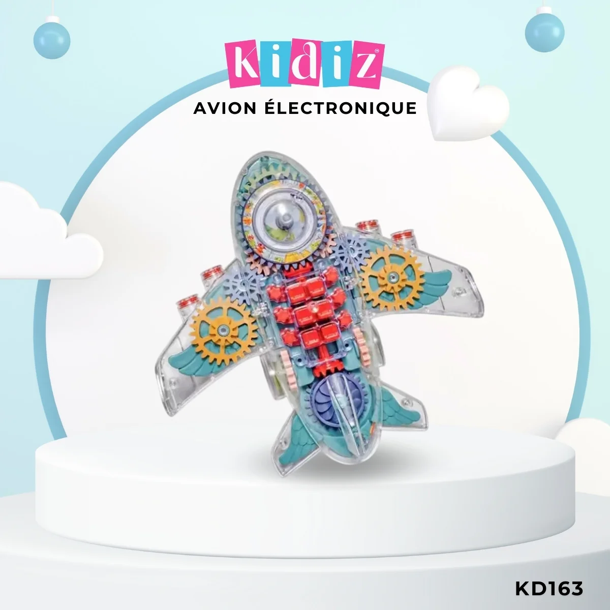 Cet avion électrique transparent est un jouet fascinant pour les enfants. En effet, son corps transparent permet de voir les engrenages et mécanismes internes en action. De plus, il émet des sons captivants, des lumières clignotantes et une musique dynamique, ce qui rend le jeu encore plus amusant. Ainsi, votre enfant pourra jouer pendant des heures sans s’ennuyer. Par conséquent, ce jouet stimule sa curiosité tout en l’émerveillant à chaque instant.