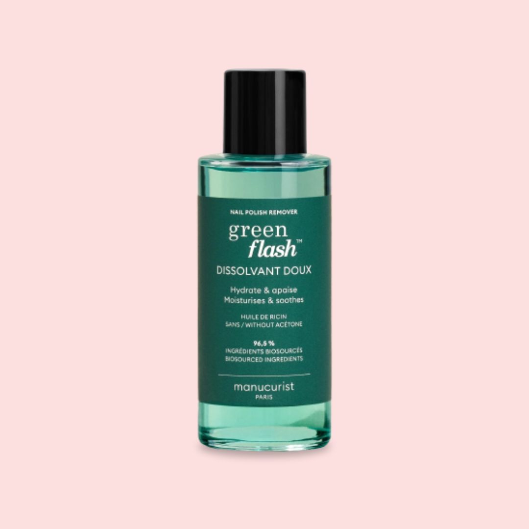 Pour utiliser l’Eau Dissolvante Green Flash, imprégnez un coton, appliquez-le sur l’ongle et laissez reposer pendant 1 minute. Ensuite, retirez délicatement le vernis. Pour une dépose plus rapide, nous vous suggérons d’utiliser nos pinces de retrait !