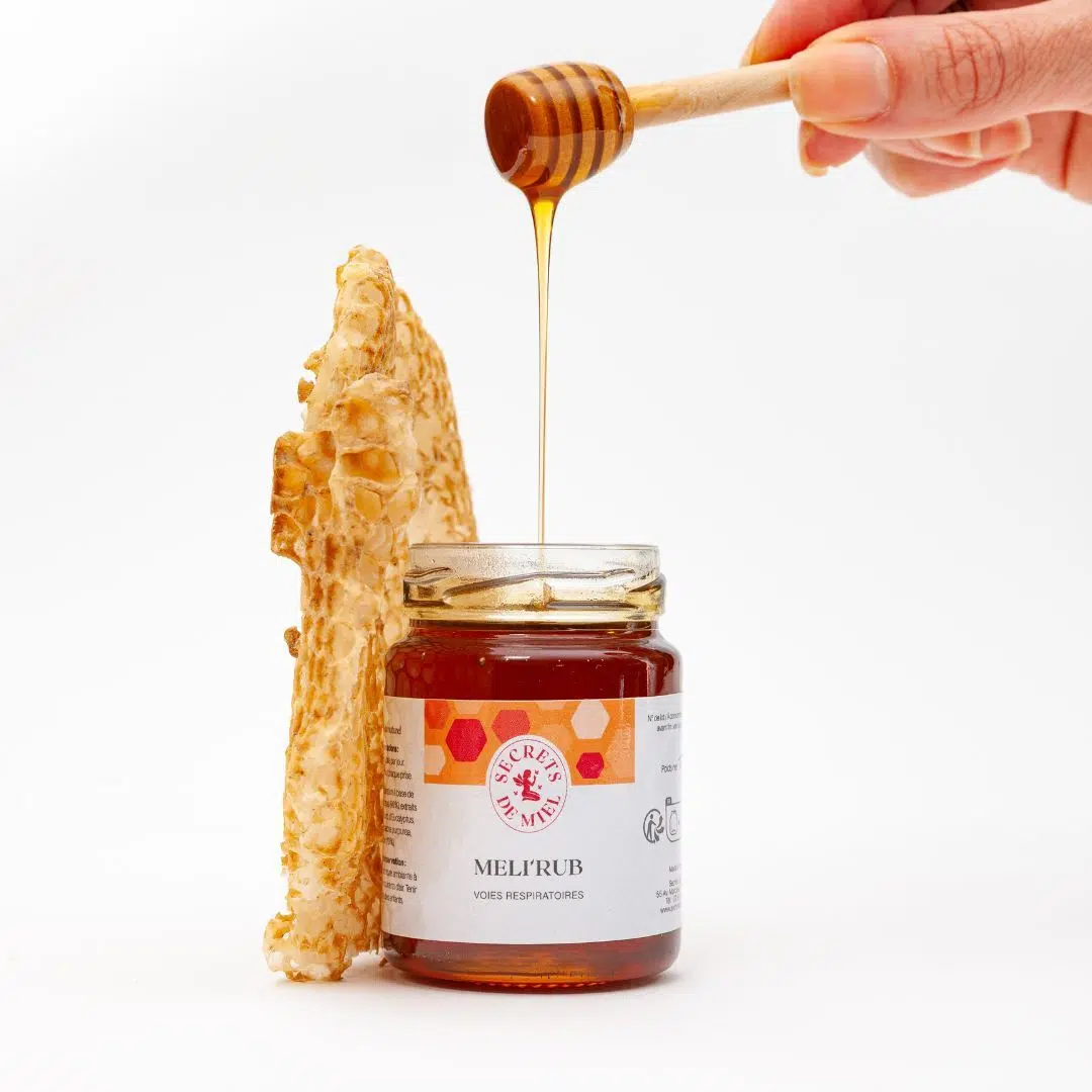 Meli’Rub vole au secours des nez bouchés de toute la famille. Remède naturel à base de miel de Thym, d’Eucalyptus, d’Échinacée et de plantes aux vertus expectorantes, il est indispensable pour des voies respiratoires saines et dégagées. Le Thym facilite l’expectoration, aide en cas de toux sèche, adoucit la gorge et soulage les irritations.