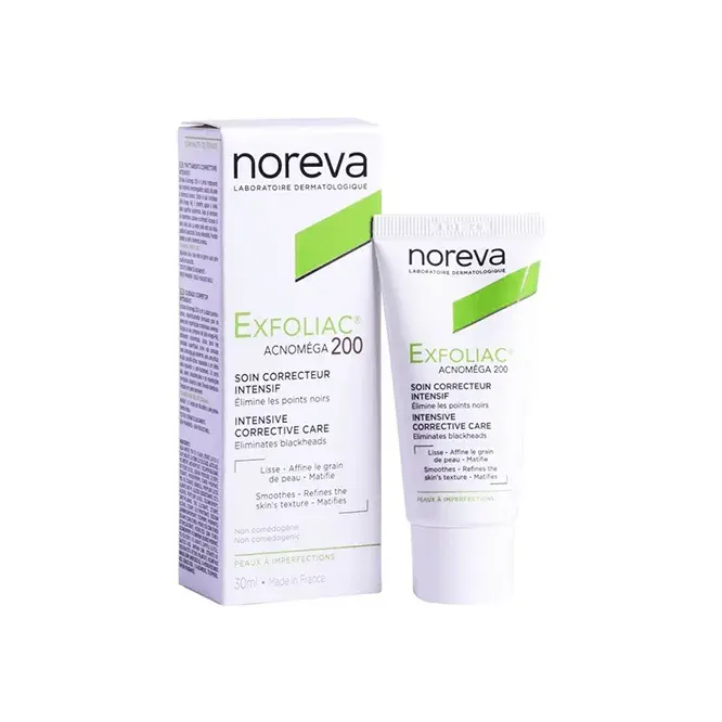 Exfoliac® Acnoméga 200 Soin kératorégulateur matifiant désobstrue les pores et gomme les imperfections.