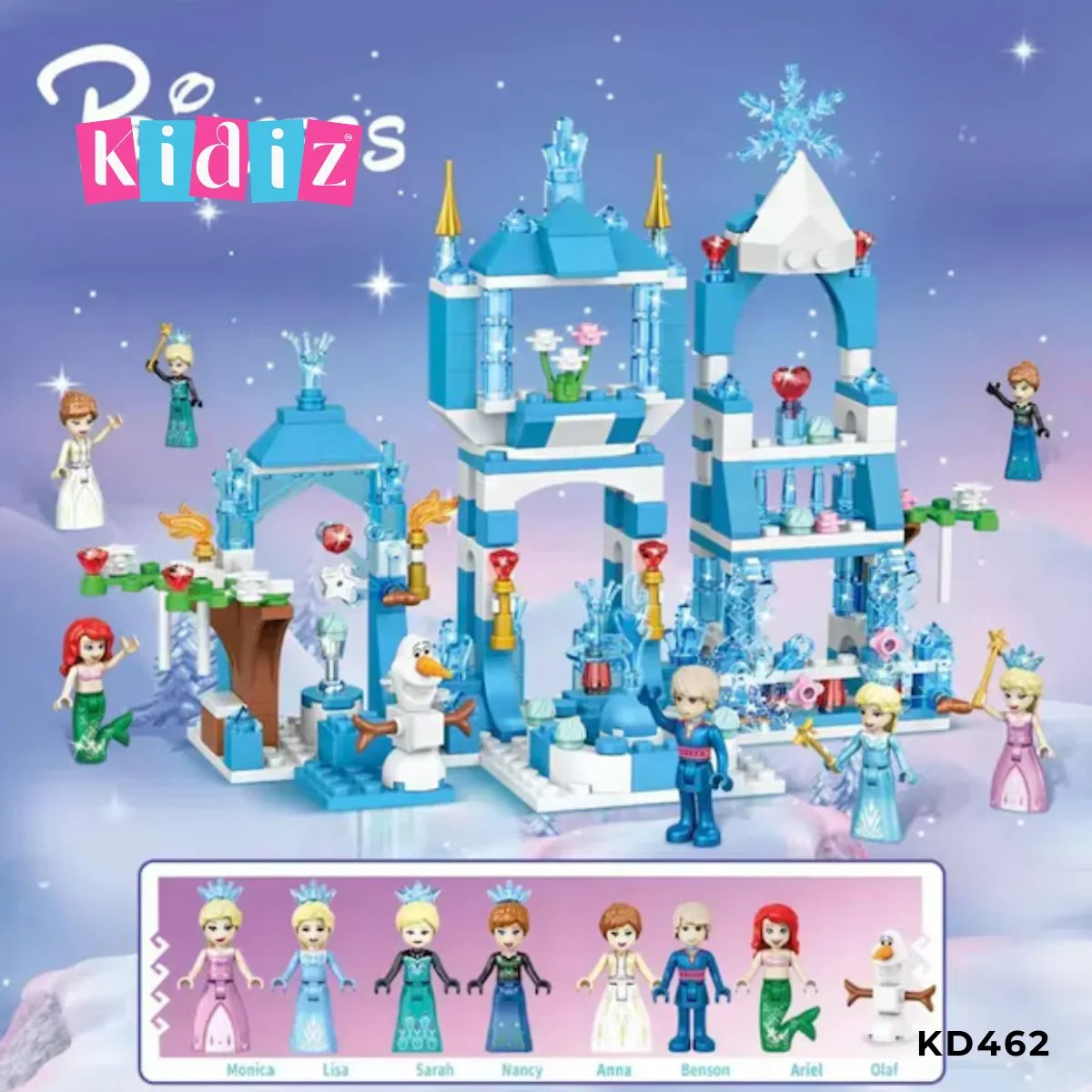 Scénarios de fête et Accessoires Royaux : Le palais n’est pas qu’un monument, c’est un lieu de vie ! Le kit inclut des baguettes magiques, des accessoires royaux et des éléments de décor pour organiser le plus beau des bals de givre ou des banquets de glace.