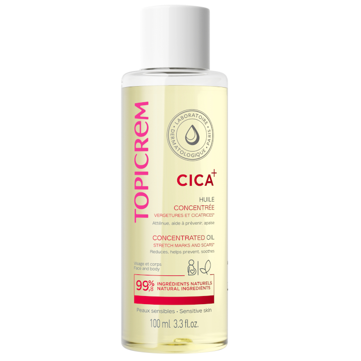 Concentrée de 3 huiles (Maracuja, Amande Douce et Cameline), CICA+ Huile Concentrée Vergetures et Cicatrices à 99,8% d’ingrédients naturels réduit visiblement l’apparence des vergetures et des cicatrices (taille et couleur). Notre huile anti-vergetures aide à prévenir l’apparition de nouvelles vergetures en raffermissant la peau. Notre huile contre les vergetures et les cicatrices apaise toute sensation de démangeaisons, tiraillements et d’inconfort, tout en hydratant durant 24h*.