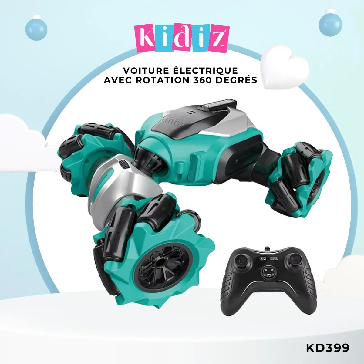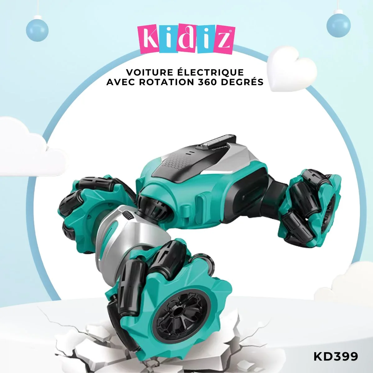 La voiture électrique KIDIZ (modèle KD399) est conçue pour offrir une expérience de conduite unique grâce à sa capacité de rotation à 360 degrés.